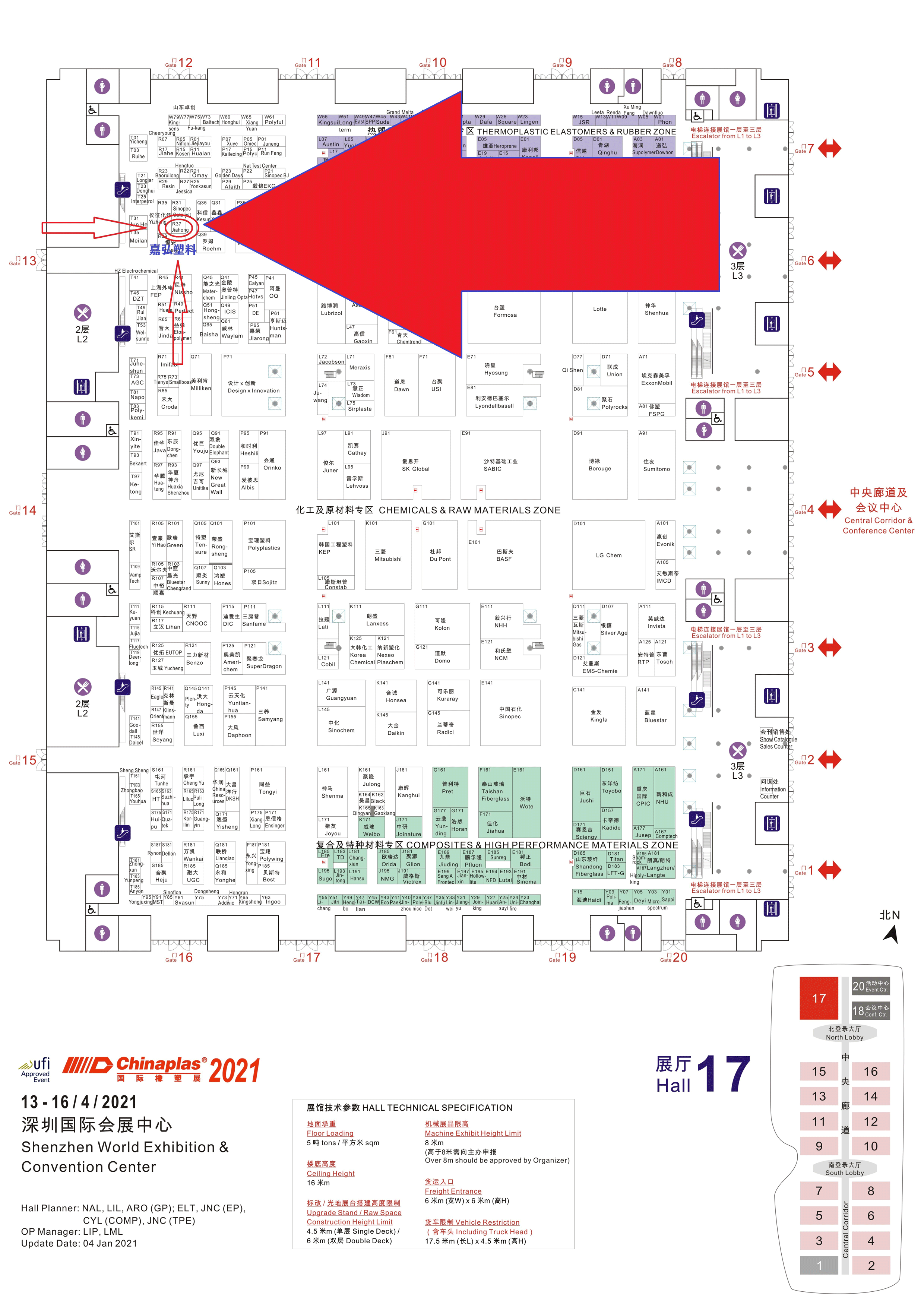 Location map of Hall 17 (near gates 12 and 13)